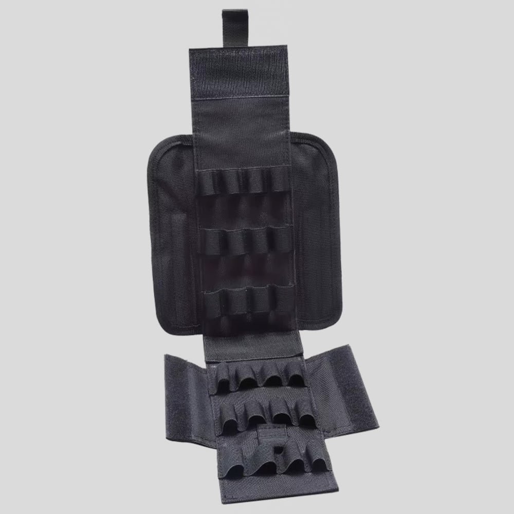 Die 12-GA-Schrotpatronentasche fasst 25 Schrotpatronen und ermöglicht blitzschnelle Nachladungen unter Hochdruck. Das robuste Nylon-Material und das MOLLE-kompatible Design sorgen für sicheren Halt an Weste oder Holster. Der praktische Klettverschluss garantiert reibungsloses Be- und Entladen – ein unverzichtbares Zubehör für jede taktische Ausrüstung.