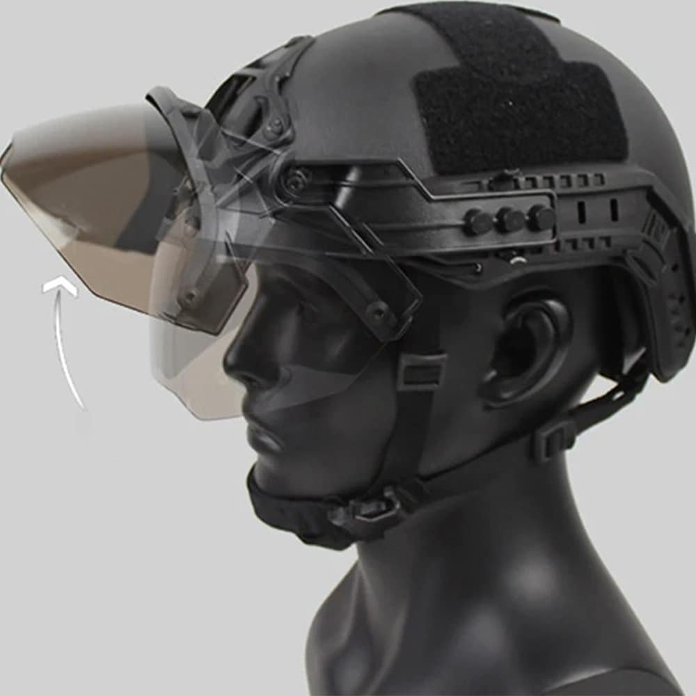 Die braun getönte Klappschutzbrille von Kula Tactical ist speziell für taktische Helme konzipiert und bietet erstklassigen Antibeschlag- sowie UV400-Schutz. Ob Airsoft, Paintball oder Cosplay – Sie behalten stets den Durchblick und maximalen Augenschutz. Das verstellbare Kopfband sorgt für sicheren Sitz auf jedem Helm, während das rundum dichte Design Schmutz und Feuchtigkeit fernhält. Ideal für alle Jahreszeiten und Einsatzgebiete.