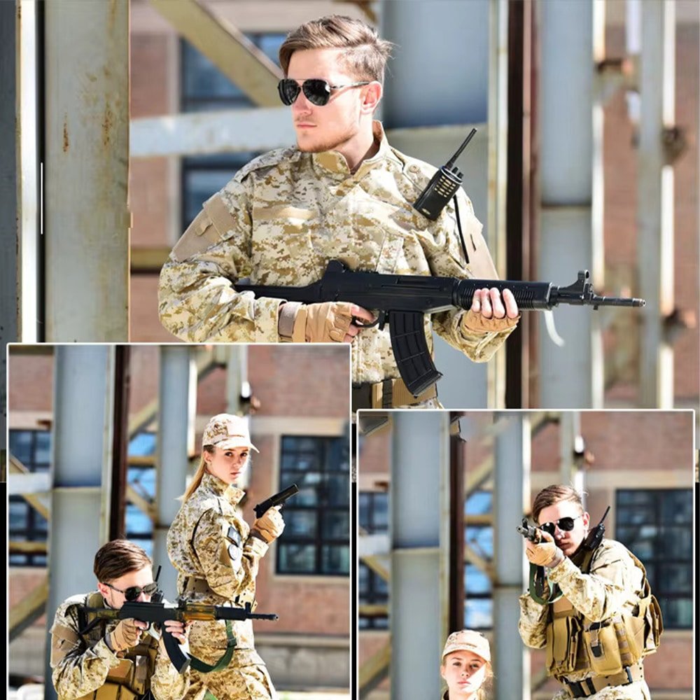 Diese Digital Desert Kampfuniform von Kula Tactical ist speziell für Outdoor-Enthusiasten konzipiert. Ob Airsoft-Spiele, Jagd oder Wandertouren – das strapazierfähige Ripstop-Gewebe aus Polyester und Baumwolle bietet optimalen Schutz und hohen Tragekomfort. Verfügbar in den Größen 2XS bis XL, passt sie sich verschiedenen Körperformen an und steht für zuverlässige Leistung in jedem Einsatz.