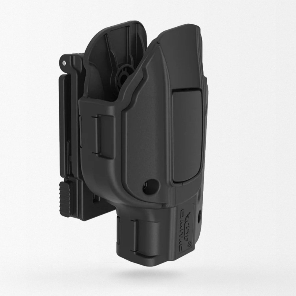 Erleben Sie maximale Effizienz in Ihrem taktischen Einsatz mit diesem Holster für Rechtshänder und Gürtel-Clip, gefertigt aus hochdichtem Polymer für extreme Widerstandsfähigkeit. Die Finger-Freigabetaste ermöglicht einen schnellen, ruckfreien Ziehvorgang, während der in 60° verstellbare Tragewinkel individuelle Anpassung bietet. Optimal kompatibel mit Glock 19, 23 und 32 – Ihr verlässlicher Begleiter in jeder Situation.