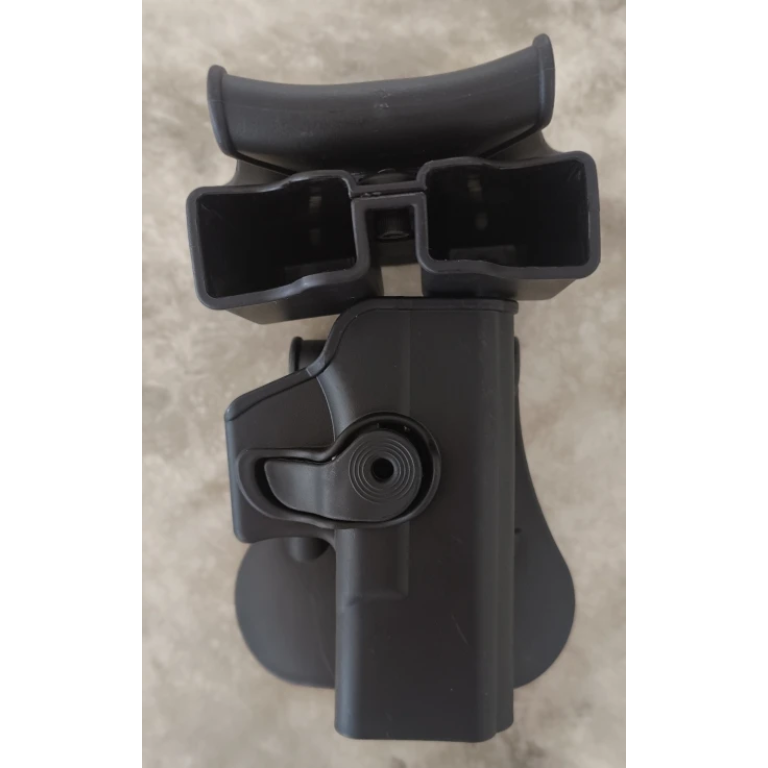 Steigern Sie Ihre taktische Einsatzbereitschaft mit diesem Paddle-Holster für Rechtshänder. Ausgestattet mit integrierten 9 mm Doppelmagazintaschen und gefertigt aus robustem Kunststoff-Polymer für optimalen Tragekomfort und schnelle Ziehgeschwindigkeit. Ideal für Outdoor-Sport und Jagd. Erhältlich in Schwarz, Sand und Olivgrün.