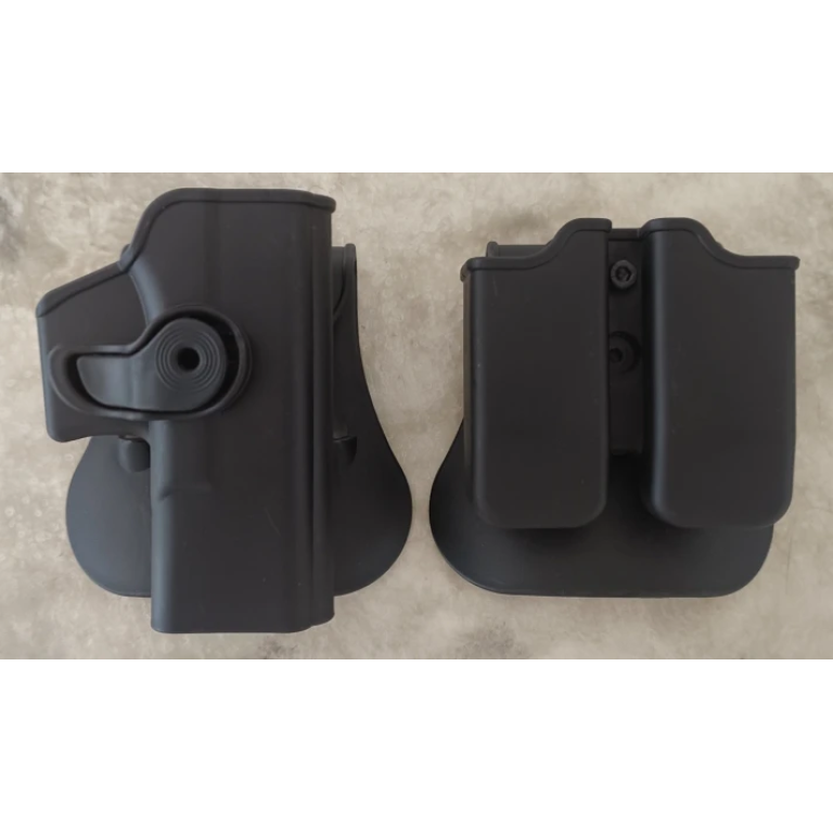 - Inklusive Pistolenholster und Doppelmagazintasche