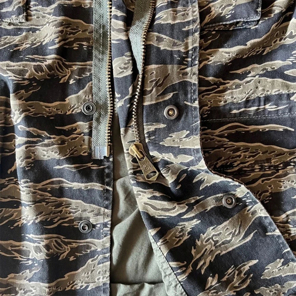 Bleiben Sie mit der M65 Feldjacke im Black Tiger Stripe Tarnmuster trocken und warm. Perfekt zum Camping, Wandern und Jagen – wind- und wasserdicht sowie thermoisoliert für kalte und nasse Bedingungen. Das robuste Baumwollmaterial und die praktischen Taschen bieten Komfort und Funktionalität für jedes Abenteuer.