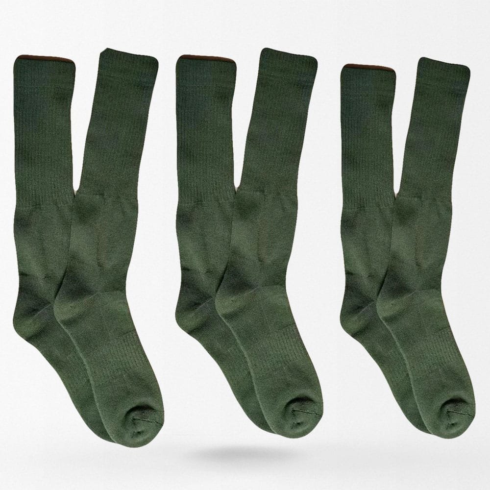 Technisch ausgelegte, kniehohe Taktiksocken in Olivgrün für militärische Anforderungen und Outdoor-Abenteuer. Die hochwertige Mischung aus Baumwolle, Polyester und Wolle sorgt für Wärme und Atmungsaktivität, während das gepolsterte Frottee-Fußbett exzellente Stoßdämpfung bietet. Ideal für Wandern, taktische Einsätze oder alle anspruchsvollen Gelände.