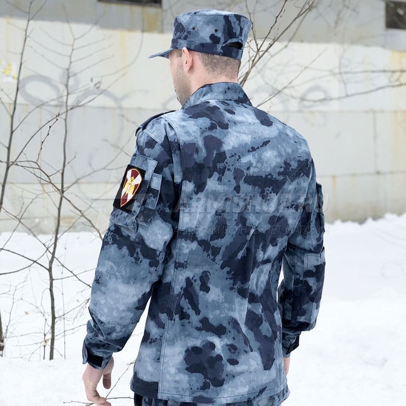 Die Wahl der blauen und moosgrünen Farbtöne innerhalb des Musters spiegelt ein Gleichgewicht zwischen der Ästhetik der Strafverfolgungsbehörden und einer Anspielung auf traditionelle Tarnungsprinzipien wider, wenn auch mit einem Schwerpunkt auf symbolischer Präsenz statt auf Tarnung.