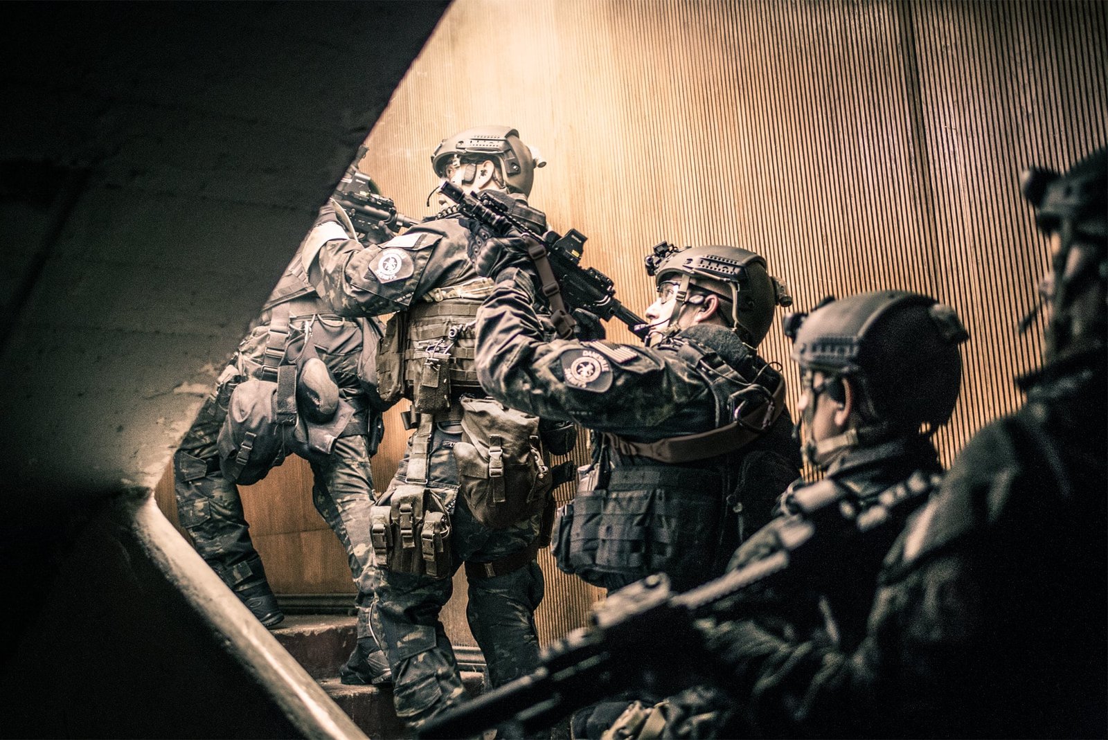 Die Effektivität von MultiCam Black beruht auf seiner Fähigkeit, die Silhouette des Trägers in schwach beleuchteten Umgebungen zu verwischen, was es besonders für städtische Operationen bei Nacht oder in schattigen Gebieten geeignet macht. Das Muster verwendet einen Farbverlauf aus Schwarz- und Grautönen, um städtische Strukturen und Lichtverhältnisse zu imitieren. Dies ist ein strategischer Vorteil bei Tarnoperationen, bei denen es entscheidend sein kann, im Hintergrund zu verschwinden.