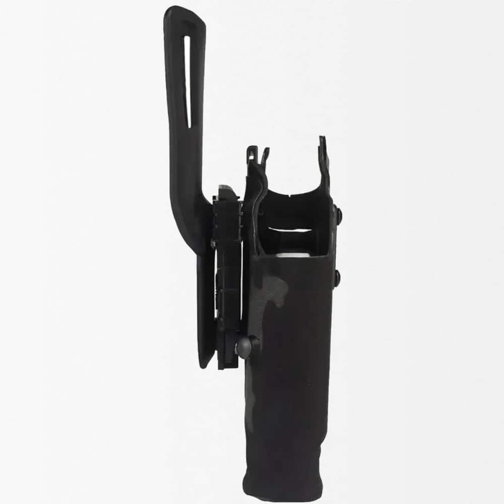 Multicam Black Oberschenkelholster für Glock 17/19 mit X300/X300U-Lampe. Aus robustem Nylon und ABS gefertigt, ermöglicht es mit dem Schnellverschluss schnellen Waffenzugriff. Ideal für Airsoft-, MilSim- und taktische Einsätze – der verstellbare Oberschenkelriemen garantiert festen Sitz. Erhältlich in Schwarz, Tan und Grün.