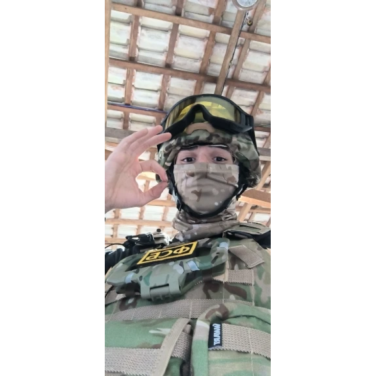 - Russisches Abzeichen mit Soldatenmotiv, ideologisches Abzeichen der russischen Truppen