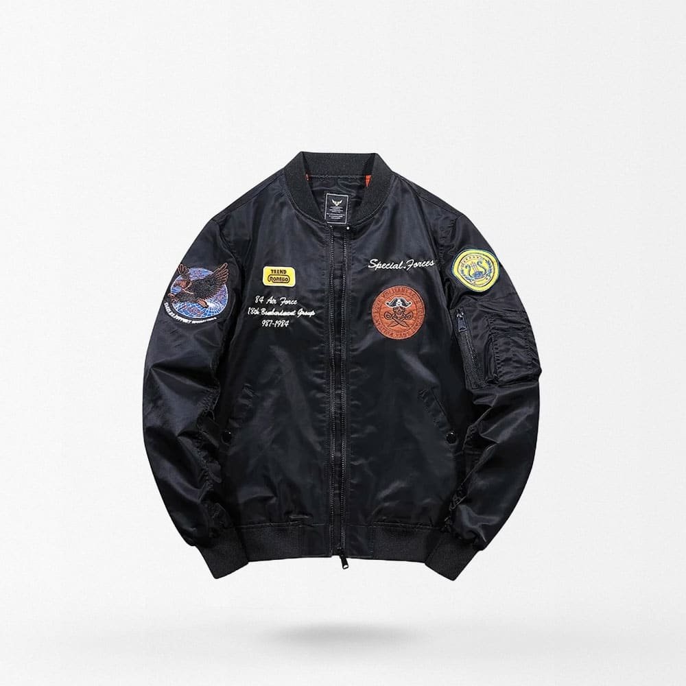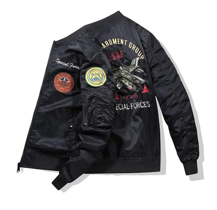 Die schwarze US Air Force MA-1 Fliegerjacke ist dein perfekter Begleiter in den Übergangsmonaten. Das leichte Polyestergewebe bietet höchsten Tragekomfort ohne aufzutragen. In elegantem Schwarz gehalten, lässt sich die Tactical Bomberjacke mühelos zu jedem Outfit kombinieren und ist damit die stylishe Wahl bei unberechenbarem Wetter.