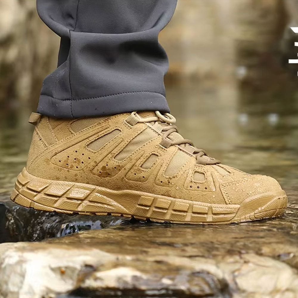 Diese vielseitigen Knöchel-Combat-Stiefel in Coyote Brown sind ideal für Outdoor-Abenteuer und taktische Einsätze. Perfekt für Frühling und Herbst bieten sie Komfort und Halt auf verschiedensten Untergründen. Die robuste Verarbeitung garantiert Langlebigkeit, während das schlanke Design jedes taktische Outfit optimal ergänzt.