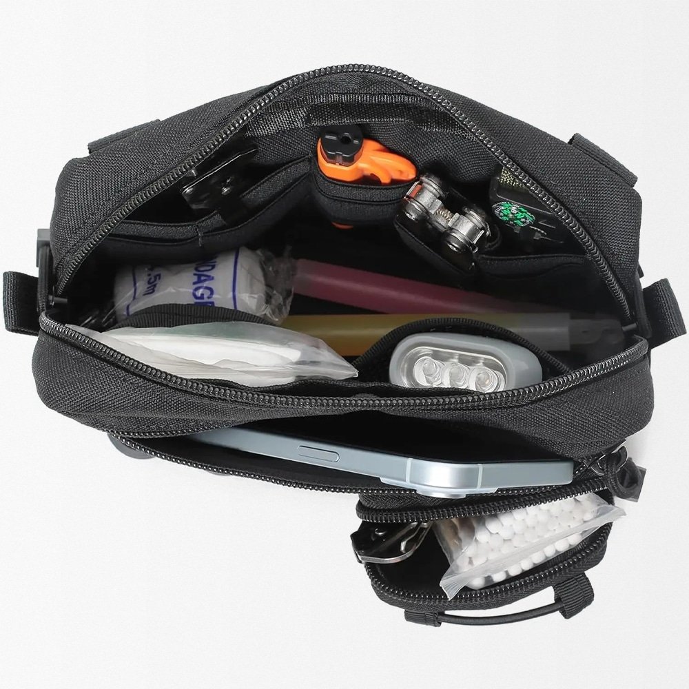 Die Tactical Horizontal Admin Pouch aus strapazierfähigem 1000D Nylon ist dein zuverlässiger Begleiter für Jagd, Outdoor und Survival. Trotz kompaktem Format bietet sie durch mehrere Fächer und elastische Schlaufen übersichtlichen Stauraum. Einfach per MOLLE-System an Weste, Rucksack oder Gurt befestigen. Erhältlich in Schwarz, Tan und Grün – jederzeit griffbereit für dein nächstes Outdoor-Abenteuer.
