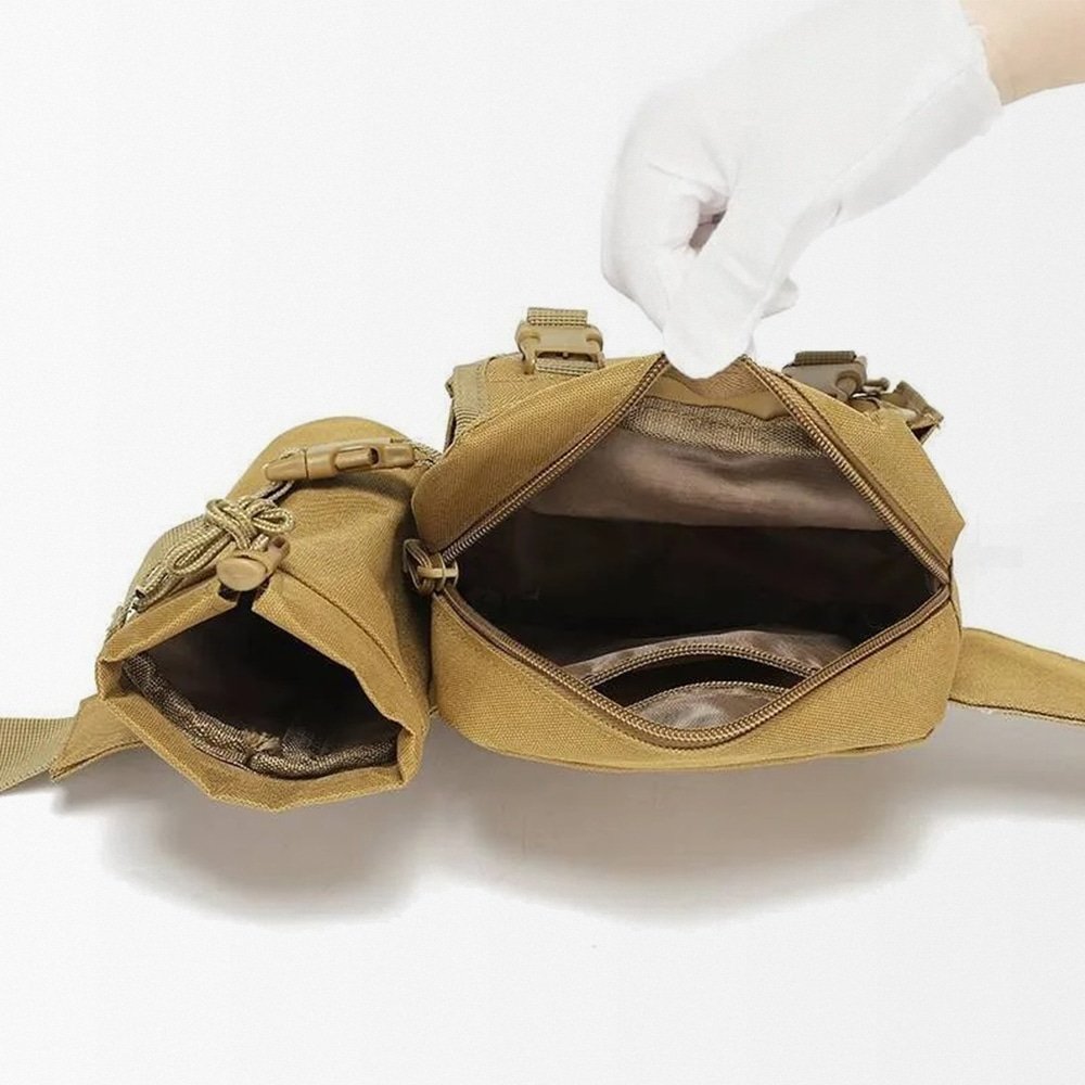 Bleiben Sie vorbereitet und organisiert mit dieser taktischen Bauchtasche, entwickelt für Outdoor-Enthusiasten und taktische Einsatzkräfte. Ausgestattet mit abnehmbarem, verstellbarem Schultergurt aus Nylonband bietet sie vielfältige Tragemöglichkeiten. Dank robuster Verarbeitung und atmungsaktivem Mesh-Futter sorgt sie beim Radfahren, Wandern oder Jagen für hohen Komfort. Mit großzügigem Stauraum für Ihre Ausrüstung und einem sicheren Flaschenhalter ist sie in jedem Gelände Ihr zuverlässiger Begleiter. Erhältlich in Schwarz, Armeegrün, Khaki und ACU.