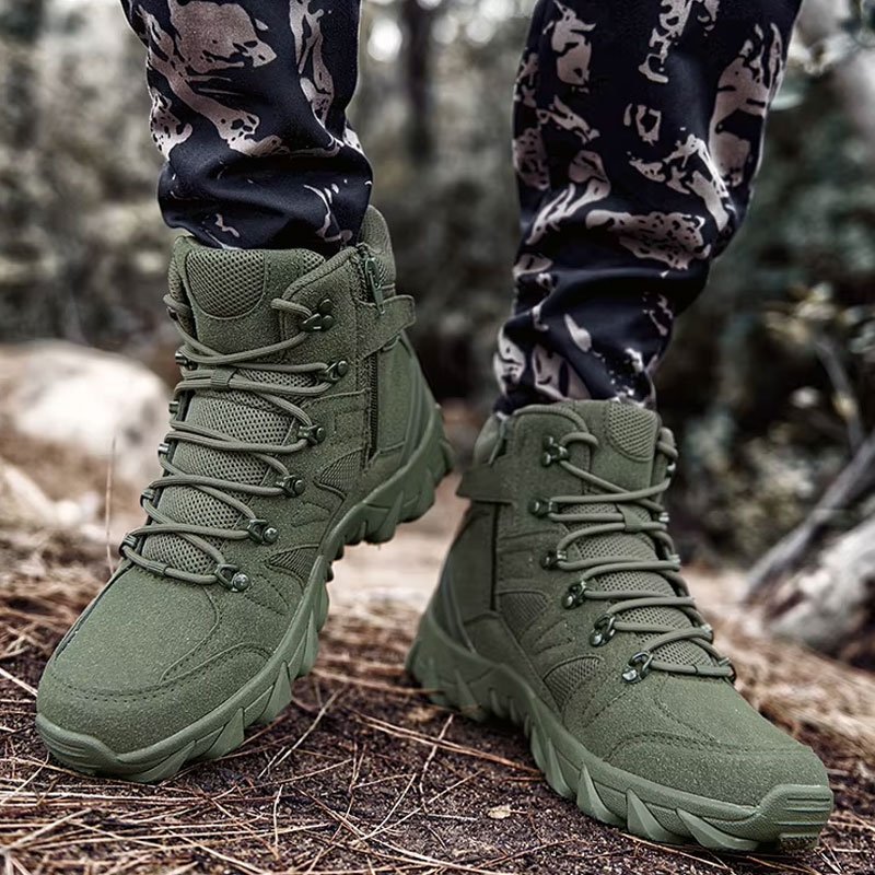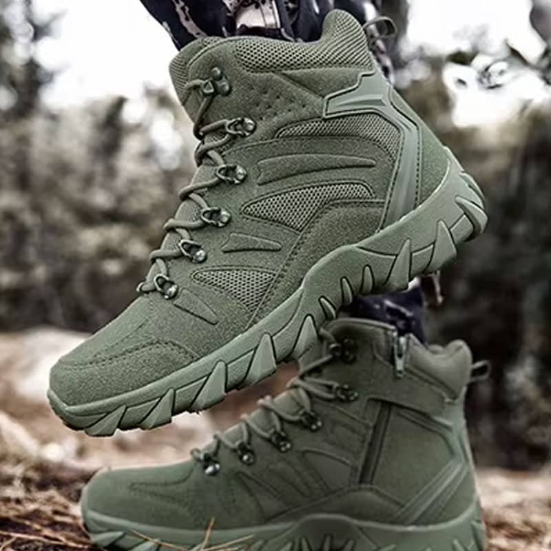 Diese taktischen Wanderschuhe sind für anspruchsvolle Outdoor-Abenteuer konzipiert und bieten besonders im Winter Wärme und Stabilität auf unterschiedlichsten Untergründen. Der Schnürverschluss sorgt für einen sicheren Sitz, während die Gummisohle exzellenten Halt garantiert. In vielseitigem Olivgrün verbinden sie Funktionalität mit einem stylischen Auftritt – ideal für alle Outdoor-Fans.