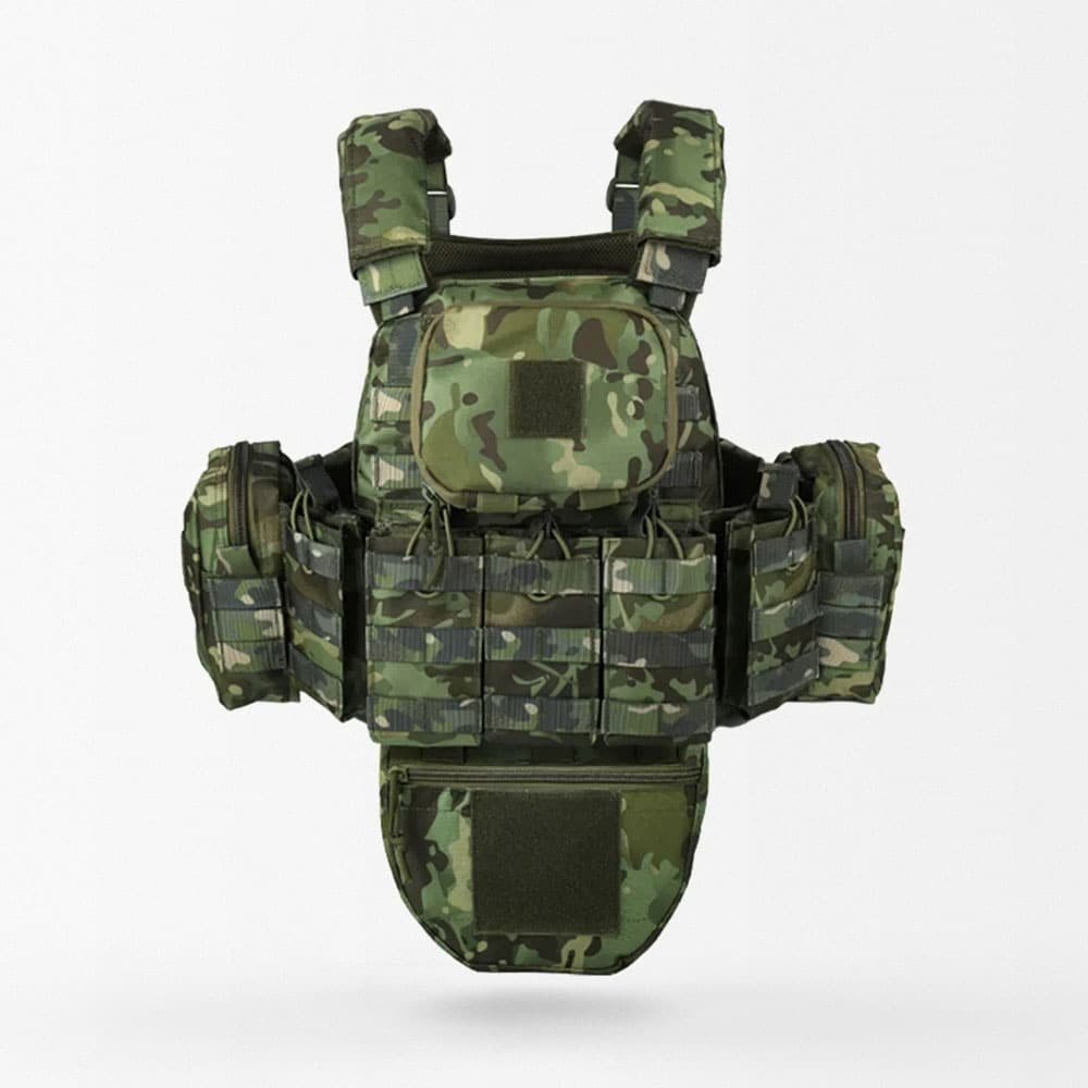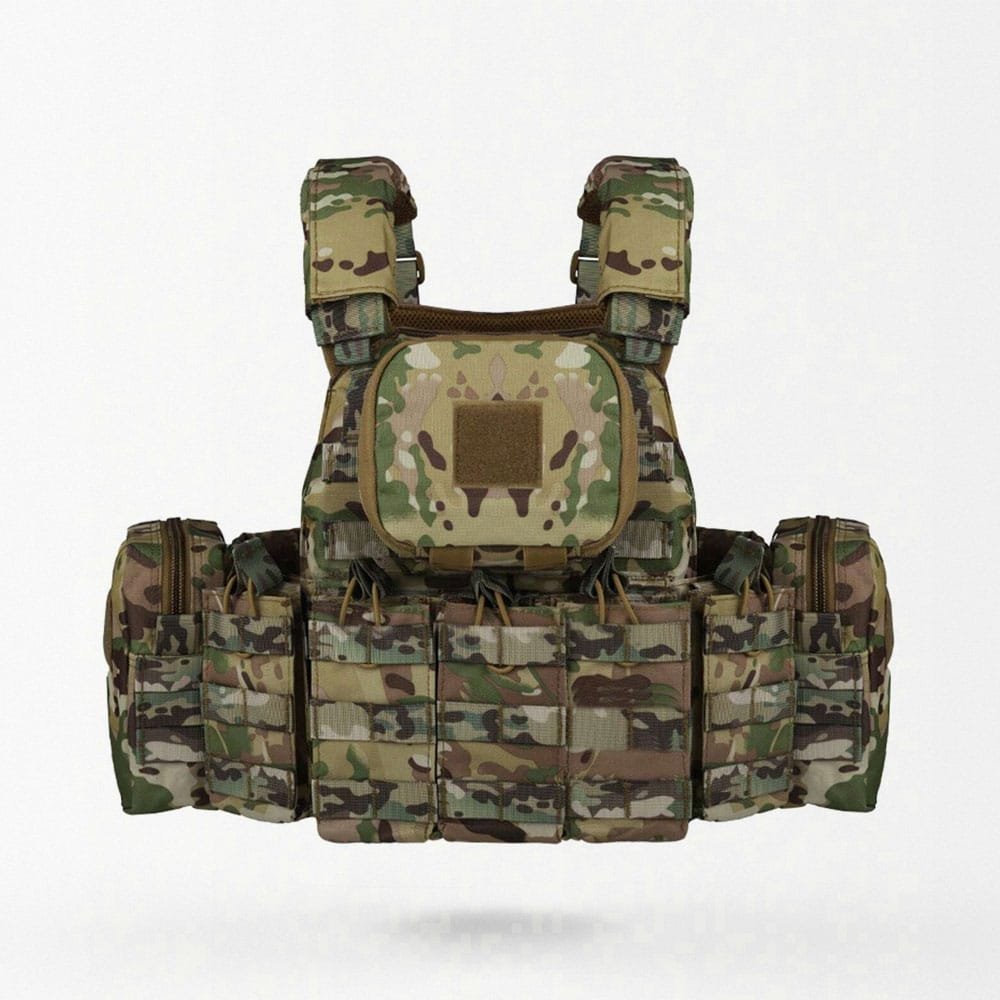 Hergestellt aus strapazierfähigem 600D-Polyester, garantiert dieser MOLLE-Plattenträger hohe Belastbarkeit bei Outdoor-CS-Training und professionellen Einsätzen. Das modulare MOLLE-System ermöglicht flexible Erweiterungen, während verstellbare Schulter- und Taillengurte für optimalen Tragekomfort sorgen. Mit Dreifach-Magazintasche, zwei Einzelfach-Magazintaschen, zwei Utility-Taschen und einer Admin-Tasche ist Ihre Ausrüstung stets organisiert und schnell griffbereit. Der integrierte Rettungsgriff bietet zusätzliche Sicherheit in kritischen Situationen.