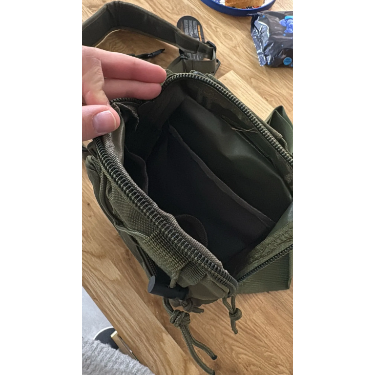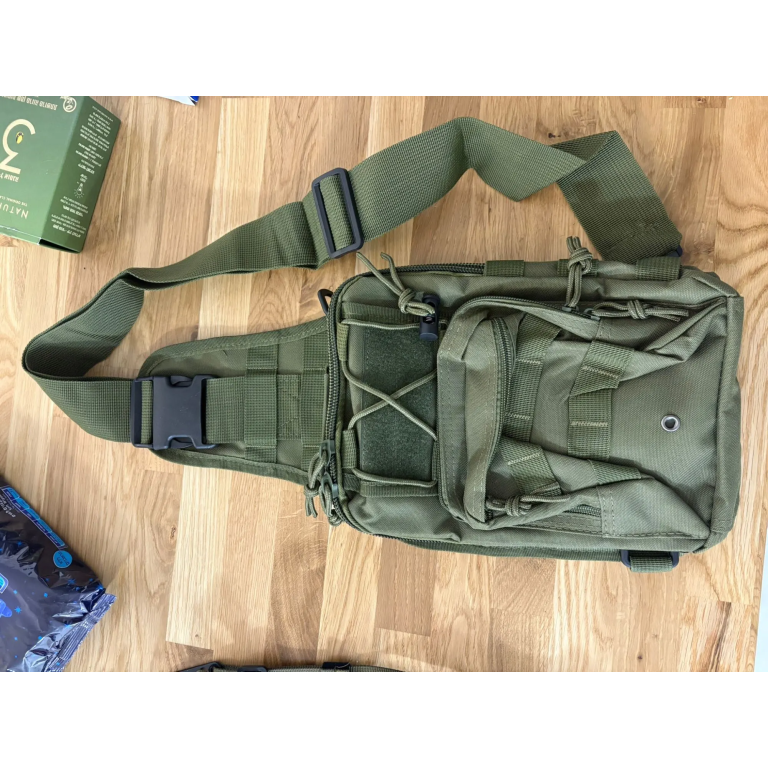 Aus widerstandsfähigem 600D Oxford-Gewebe gefertigt, ist diese olivgrüne Tactical Sling Bag ideal für Jagd und Outdoor-Abenteuer. Das beidhändig nutzbare Sling-Design ermöglicht schnellen Zugriff, während das atmungsaktive Mesh-Rückenpolster und die gepolsterten Gurte für Komfort auf jedem Terrain sorgen. Bleiben Sie organisiert und einsatzbereit.