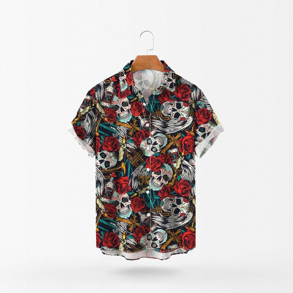Perfekt für sommerliche Freizeitaktivitäten verbindet dieses Totenkopf-Hawaiihemd Komfort mit einem coolen, auffälligen Stil. Aus leichtem Polyester gefertigt, mit umgelegtem Kragen und kurzen Ärmeln. Ideal für Strandpartys oder entspannte Stadtbummel – erhältlich in kräftigen Farben, die deine mutige Persönlichkeit unterstreichen.