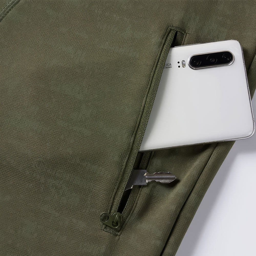 - Reißverschlusstasche am Rücken: Praktischer Stauraum für Handy, Schlüssel oder Geld.