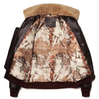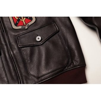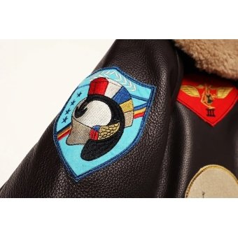 Kanalisiere deinen inneren Aviator mit dieser taktischen Leder-Bomberjacke im Top Gun Maverick-Design. Perfekt als Winterjacke dank dickem Rindsleder und wärmendem Polyester-Futter. Der Umlegekragen und die markanten Reißverschlüsse unterstreichen das robuste Military-Flair, das dezente Letter-Design sorgt für moderne Akzente.