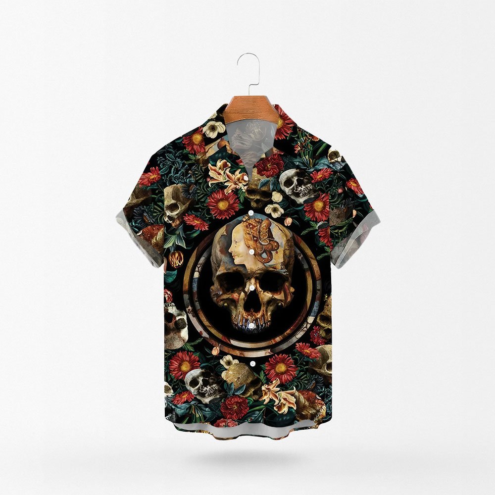 Perfekt für warme Tage ist dieses Skull Hawaiian Shirt Ihr idealer Begleiter für entspannte Freizeitaktivitäten. Aus leichtem Polyester gefertigt, mit Umlegekragen und kurzen Ärmeln, sorgt es für angenehmen Tragekomfort bei Hitze. Ob am Strand, beim Grillen oder beim Spaziergang – dieses Hemd bringt eine coole Note in Ihre Garderobe.