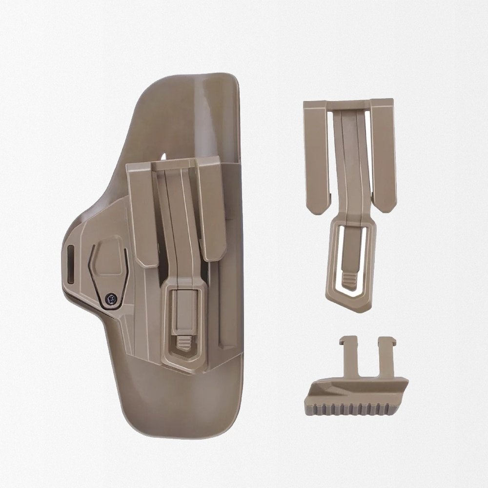 Erleben Sie perfektes verdecktes Tragen mit unserem Universal-IWB-Innenholster aus widerstandsfähigem Nylon. Das ultraflache Profil und die ergonomische Form garantieren höchsten Tragekomfort. Die anpassbare passive Retention und der wechselbare Gürtelclip sichern Ihre Waffe zuverlässig, während der abnehmbare Spacer zusätzliche Kaschierung bietet. Ideal für Alltag und Einsatz – in Schwarz, für Rechtshänder.