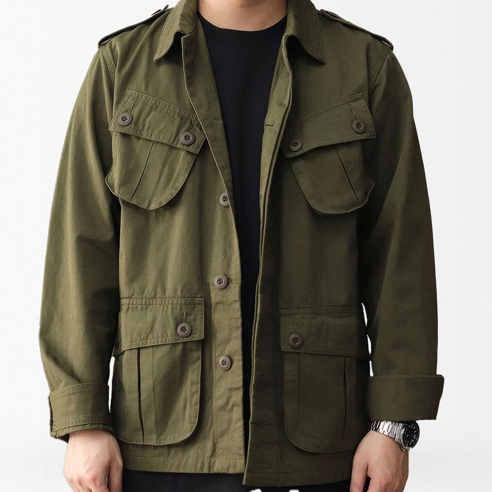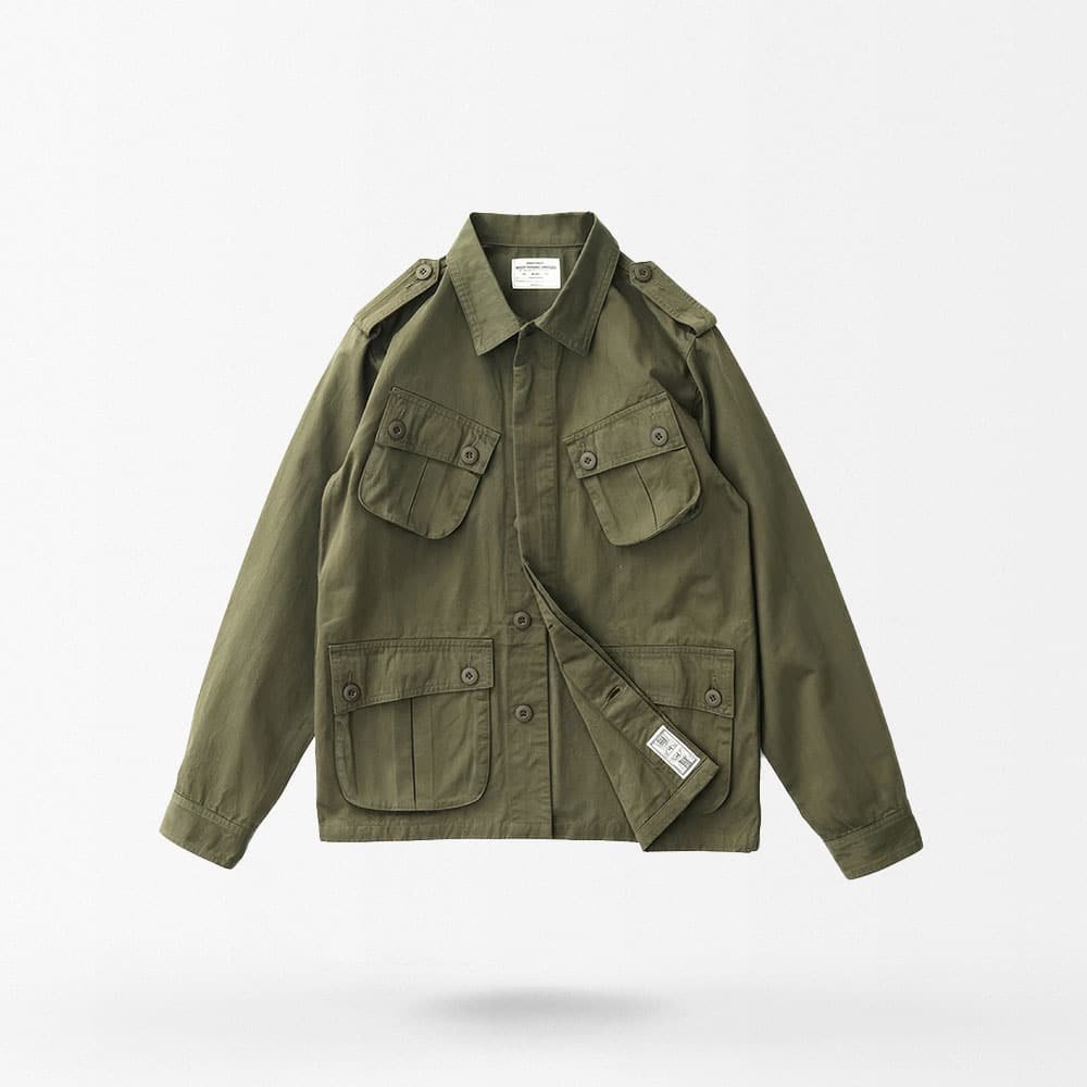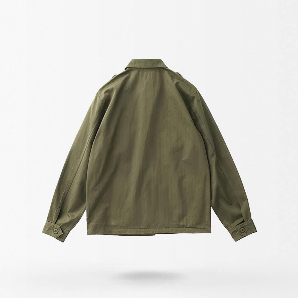 Diese Vintage M43 Feldjacke ist ideal für Casual-Outfits bei wechselhaftem Wetter. Aus 100 % Baumwolle mit Fischgrätmuster gefertigt, bietet sie mittlere Wärme und vier praktische Klappentaschen. Erhältlich in Dunkelblau und Olivgrün verbindet sie authentischen Militär-Charme mit modernem Retro-Streetwear-Stil.