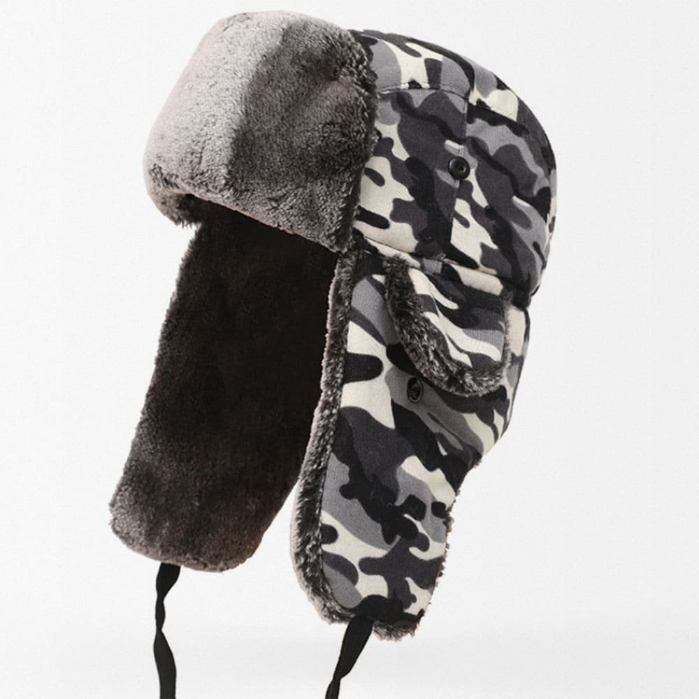 Frostiges Versteck: Weiße Camo-Trapper-Mütze